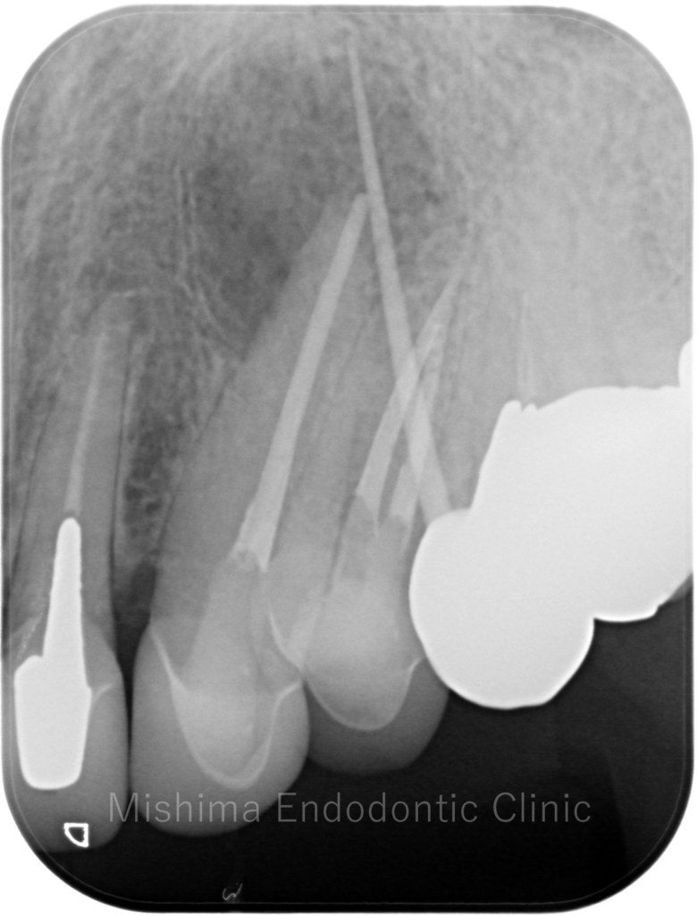 | 治療内容 | 他院にて歯根端切除術の既往があり、その後サイナストラクトを発現。再歯根端切除術にて対応。 |