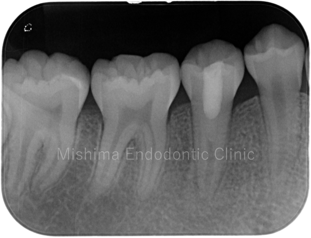 | 治療内容 | 歯髄診査にて電気歯髄診、coldテストにて陰性反応を示し、歯髄壊死と診断。患者は12才歯は根未完成歯であることから、再生歯内療法を行った。術後、電気歯髄診、coldテストに て陽性反応を示し、根尖透過像も消失し、経過は良好。 |