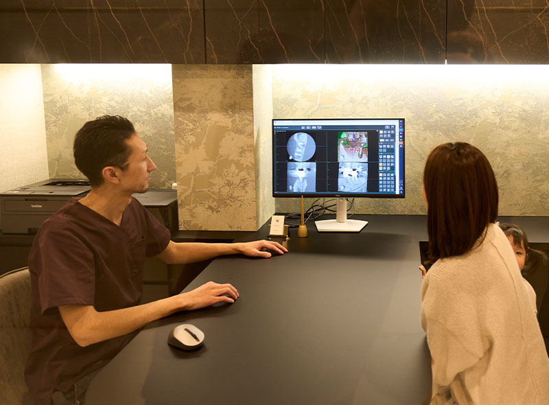 基本的に初診時は処置を行いません。遠方より来院される方は、初診時に治療することも可能ですので、事前にご相談ください。 -