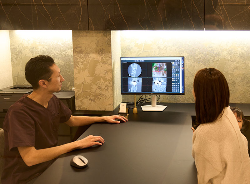 一般的な歯科では、根管治療で治らなければ、“割れているかもしれない”という予想から、「抜歯しかない」、という判断をされがちですが、当院では、CTやレントゲンを使用し、視認での確認を必須として、精度の高い診断をしっかりと行います。